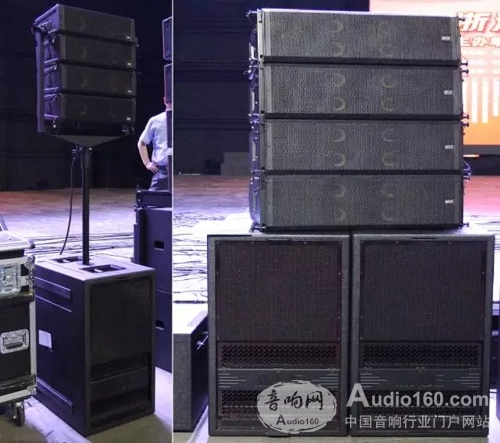在演播廳內,由4只al-8線陣音箱和2只hs-28超低音的組合音箱系統堆疊在舞臺左右兩側。