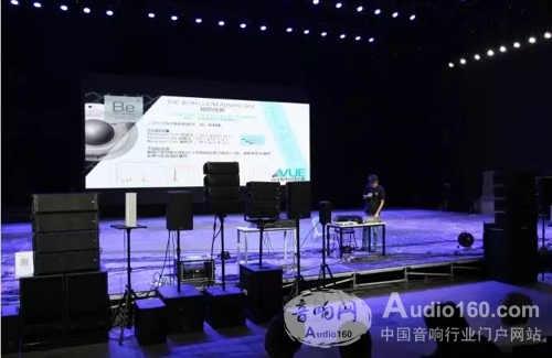 VUE中國區銷售經理徐維文給在場觀眾講解了VUE品牌背后的故事以及VUE的技術亮點,包括VUE al-系列線陣系統中用到的連續源拓撲結構,完全對稱設計原理,h-系列超低音的ACM主動融合管理技術,SystemVUE監控系統和VUEPoint聲波束調控技術等等。同時,通過鈹、鋁和鈦三種不同材質的音叉的對比,徐維文給大家展示了最具特色的Truextent鈹膜的優勢。