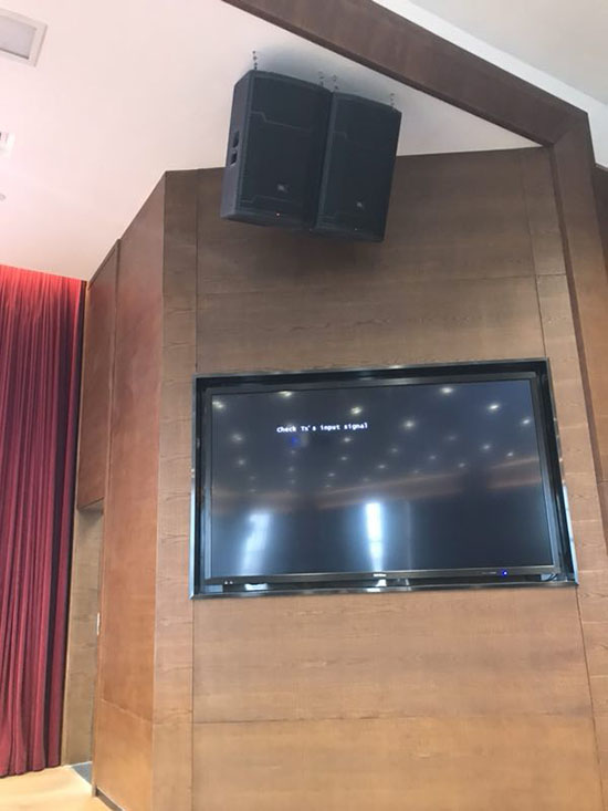 報告廳會議擴聲系統選用美國JBL PRX800W新一代有源智能揚聲器系統。其中使用了PRX 812W有源12寸兩分頻作為舞臺監聽以及側補音。PRX815W有源15寸兩分頻作為主擴聲。JBL全新推出的PRX800全系列產品都擁有1500W高輸出動力,并且內置D類功放,結合JBL專利技術,能夠實現最高的效能,還能實現WiFi無線控制,擁有操控自如的特點,最終贏得了業主的青睞。