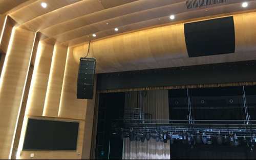 由于劇場內廳堂高度較高,根據覆蓋區域的不同,觀眾席臺口、樓座四周和臺唇樂池采用EAW 點聲源MK系列和UB系列作為補聲揚聲器。流動返聽選用多只VFM159I無源二分頻舞臺監聽音箱,固定返聽則選用多只MK2396I二分頻高輸出音箱。