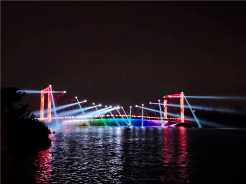 HDL通過為剪影橋安裝多媒體表演控制軟件、DMX512記錄器、編碼解碼器和繼電器等產品來實現燈光表演的智能控制。剪影橋的照明燈、舞臺搖頭燈和水幕、水幕燈接入系統后,幕后工作人員就可以根據演出的需要靈活控制燈具,打造出真實而又震撼人心的表演效果。