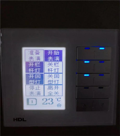 除了可以在多媒體表演控制軟件上控制表演的燈光,HDL還為剪影橋安裝了智能面板,工作人員可以在面板上直接選擇“開始表演”、“停止表演”,或者選擇打開不同區域、不同效果的燈光,簡單直觀而又節省時間。