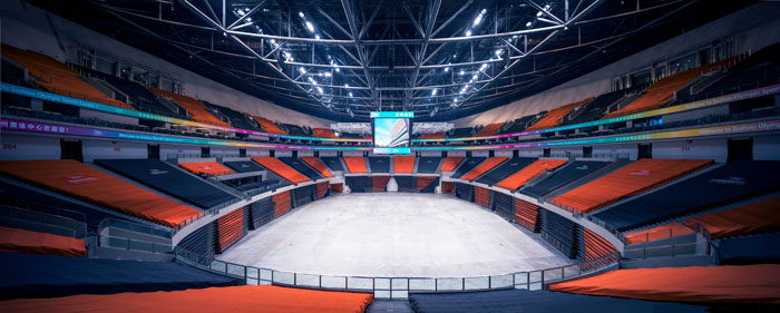 商業廣場設有購物、辦公及酒店等配套服務功能,是對三座體育建筑的補充,同時增加了整個園區的休閑娛樂氛圍。在商業中心的滑冰場中安裝了DYNACORD VL系列兩分頻全頻揚聲器,均衡覆蓋每個角落,確保場內人員能夠借助曼妙的音樂,為滑冰增添一份樂趣。