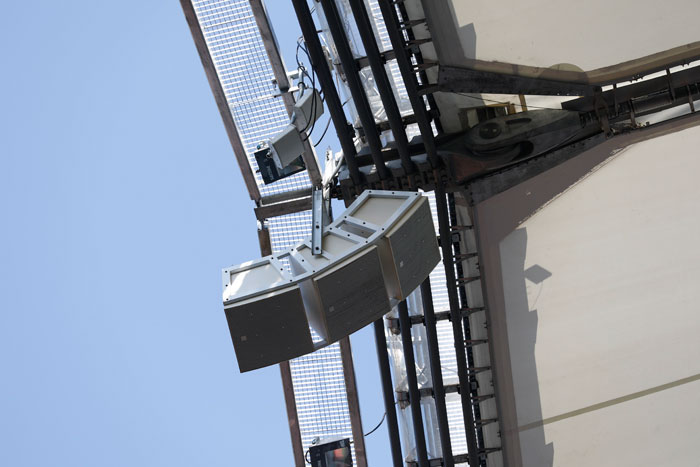 每一座體育場館都有其特色,而蘇州奧林匹克體育中心體育場是迄今為止中國第一座馬鞍形單層索膜結構屋頂設計的體育場,這也為整個擴聲設計方案增加了難度。蘇州奧林匹克體育中心項目設計部負責人表示:“通常大部分的體育場都是鋼架結構,這一次我們的特殊結構意味著只能借助全場40個索頭拉住膜。”由于這種獨特的設計,馬道在膜上方,揚聲器的安裝沒有固定安裝點,因此安裝和檢修非常困難。另外,其上下擺動的幅度達到1.5米以上。這些問題都給整個擴聲解決方案的設計增加了很多難度。“經過再三研究、博世團隊借鑒了之前給倫敦碗提供的安裝方式,邀請了專業的設計人員在每個鎖頭上設計了一個安裝點并且安裝滑輪, 通過卷揚機把揚聲器卷上去,當檢修時則采用同樣的方式將揚聲器卸下,最終解決了我們的難點。”他又補充道,“除了攻克吊掛技術難點,我們之所以選擇單層索膜結構頂的設計意味著我們希望體育場在美觀度上有新的突破,EV白色款EVH系列全天候揚聲器從顏色和整體結構上同索膜結構完美契合。另外,EVH的音質也確保現場觀眾無論位于哪個位置,哪個角度都可以聽到清晰震撼的聲音。”