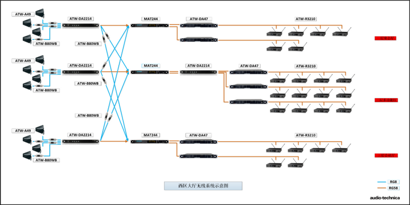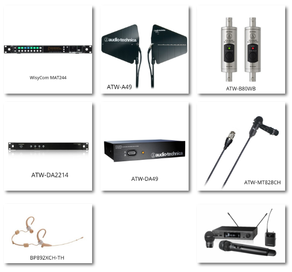 該項目中選配了兩套不同品牌的無線系統來實現互通互聯,分別是WisyCom的無線系統和鐵三角Audio-Technica的無線系統。