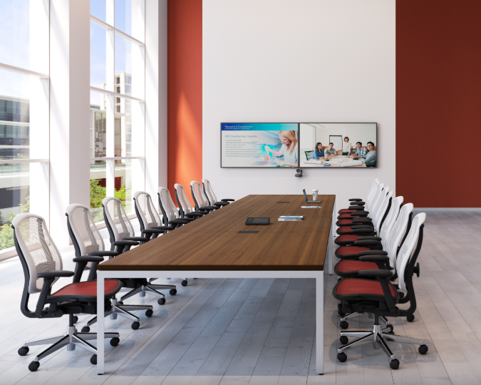 集成 Logitech Rally攝像機(jī)和 Tap 的大型會(huì)議室